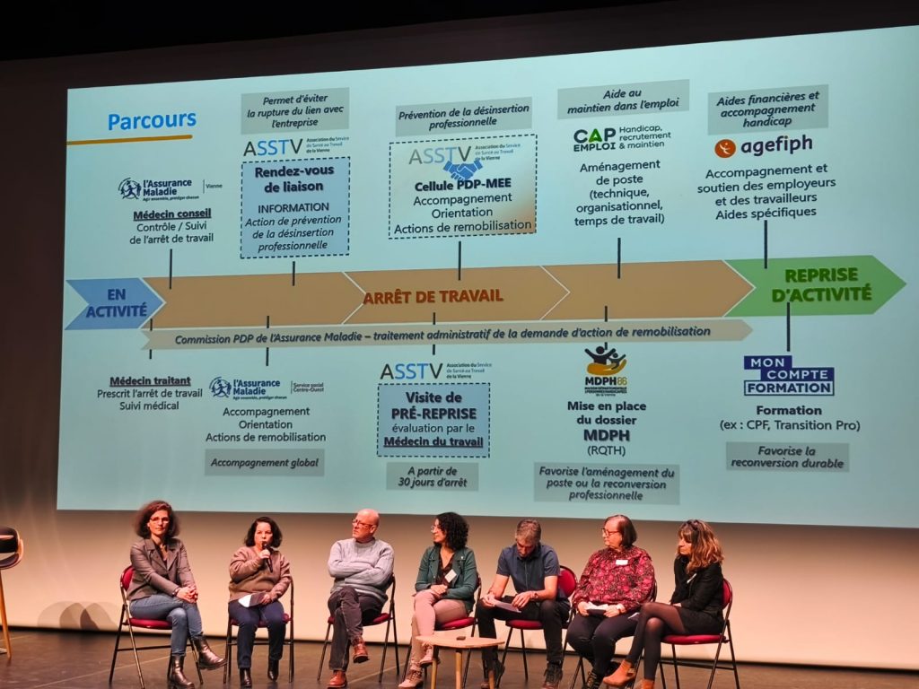 Après un job dating pour les personnes en situation de handicap, une table ronde sur l’épuisement professionnel a été organisée. De nombreux professionnels de la santé de la Vienne étaient présents pour expliquer le parcours effectué par une personne en burnout, et le dispositif « d’essai-encadré », dont le but est d’accompagner dans le retour à l’emploi.